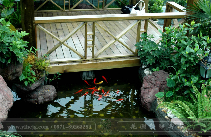 露臺花園|露臺假山水溪景觀|露臺木平臺景觀設計|私家小露臺景觀綠化
